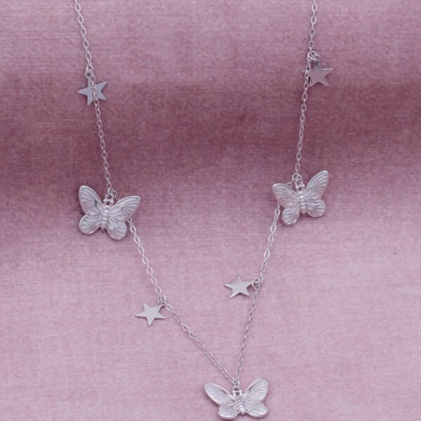 | Adjustable Rosegold Chain with Butterfly Pendant remove | Silver ring remove | Round-Shaped Solitaire Pendant remove | Adjustable Silver Chain with Butterfly Pendant remove | Delicate Butterfly and Star Charms Chain remove | Celestial Elegance Pendant remove | |||