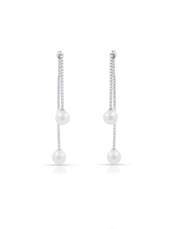 Radiate sophistication with our hanging earrings adorned with a lustrous pearl drop. These exquisite earrings marry classic elegance with contemporary flair, making them ideal for any occasion. Their refined design adds a touch of sophistication to both casual and formal ensembles.