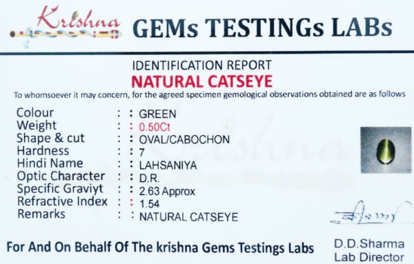 Lahsuniya- Cats’ Eye – 0.500 Carats