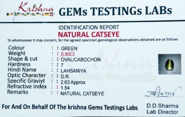 Lahsuniya- Cats’ Eye – 0.800 Carats