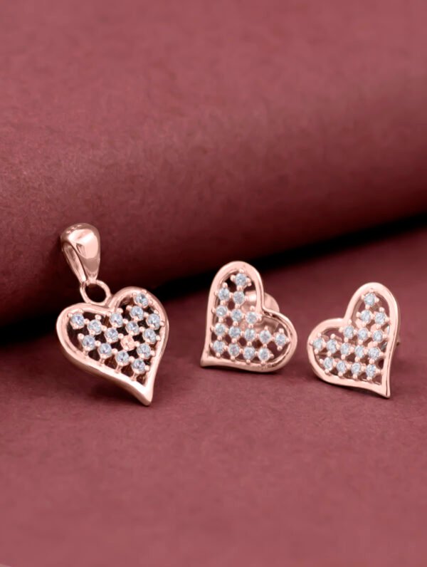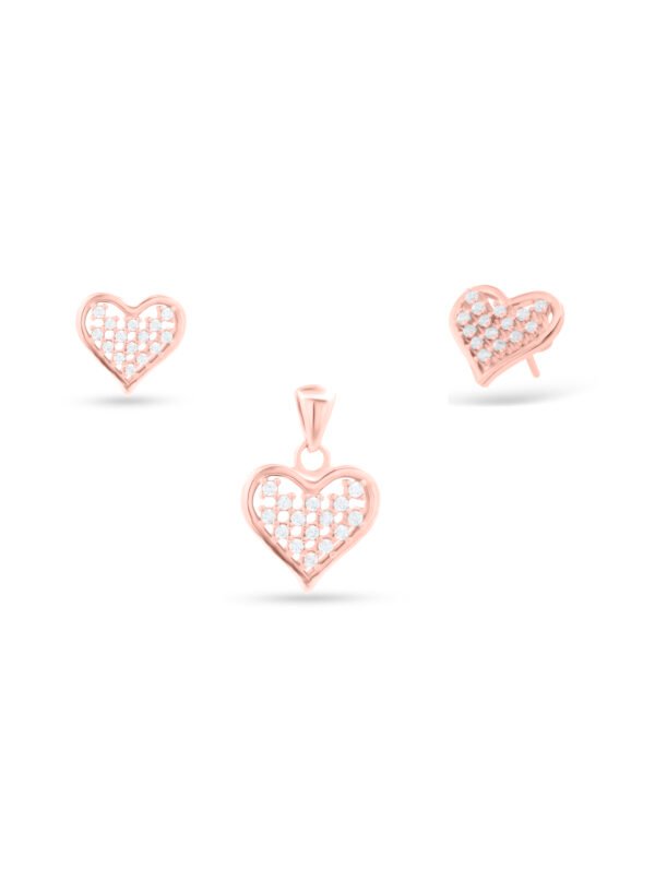 Add a touch of romance to your collection with our sterling silver heart-shaped pendant set. This elegant set features a beautifully crafted heart pendant, symbolizing love and affection, paired with matching earrings.