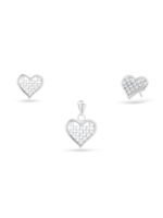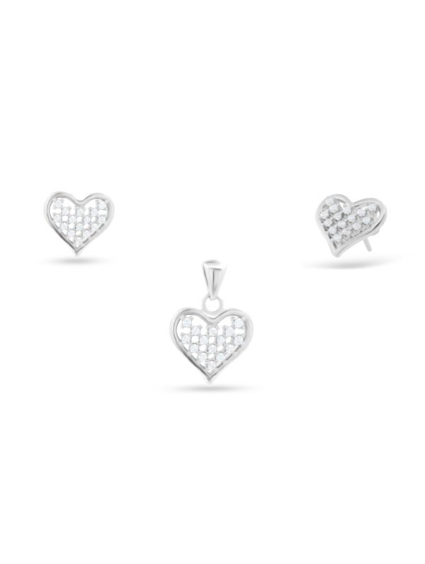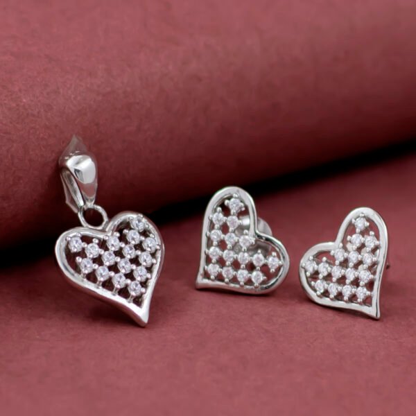 Add a touch of romance to your collection with our sterling silver heart-shaped pendant set. This elegant set features a beautifully crafted heart pendant, symbolizing love and affection, paired with matching earrings.
