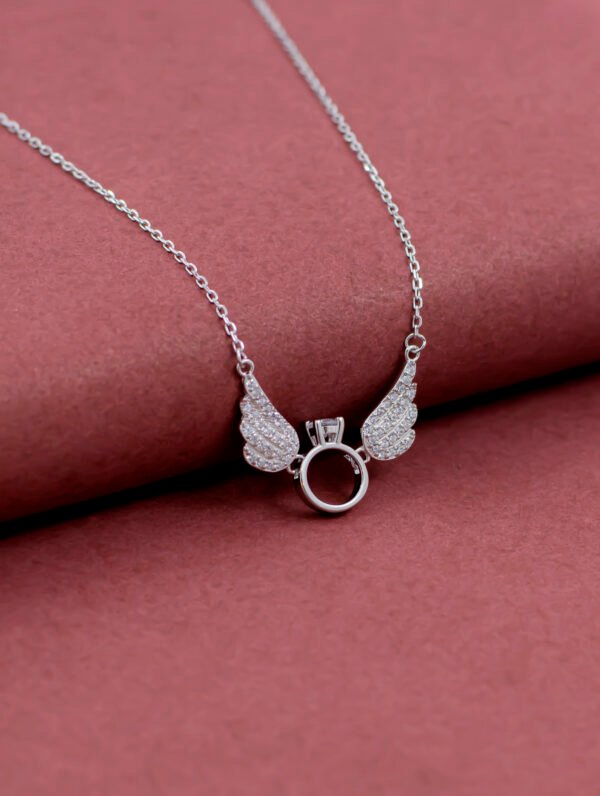 Exude elegance with our exquisite 92.5 sterling silver wing chain featuring a stunning solitaire centerpiece. Crafted to perfection, this timeless piece effortlessly blends sophistication with subtle charm, making it a must-have accessory for any occasion.